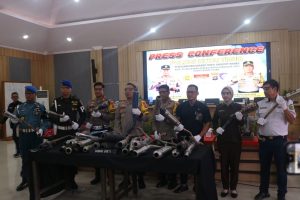 Gemparkutim.com – Kutim – Kepolisian Resor (Polres) Kutai Timur (Kutim) menggelar konferensi pers terkait pemusnahan 33 knalpot brong hasil sitaan dari Operasi Patuh Mahakam 2025. Kegiatan ini berlangsung di Auditorium Polres Kutim, Sangatta, Rabu (30/7/2025),