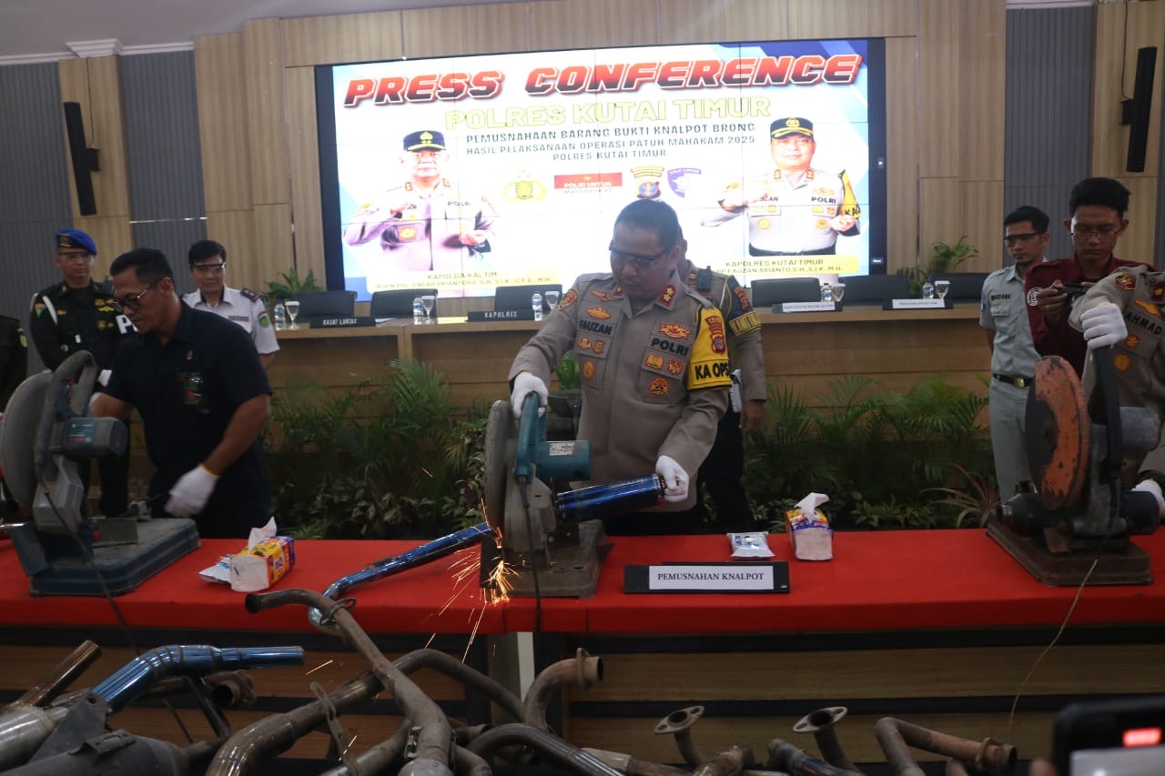 Sebagai tindak lanjut, Polres Kutim memusnahkan seluruh knalpot brong sitaan dengan cara digerinda di hadapan media dan tamu undangan. Dua pelanggar turut dihadirkan, salah satunya seorang pelajar SMK yang kedapatan menggunakan knalpot brong tanpa memiliki SIM.