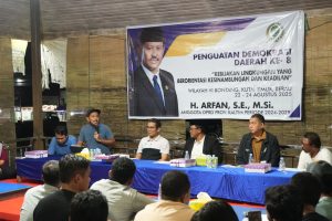 Kaltim, GemparKutim.Com – Anggota DPRD Provinsi Kalimantan Timur, H. Arfan, SE., M.Si., menggelar kegiatan Penguatan Demokrasi Daerah ke-8 dengan tema “Kebijakan Lingkungan yang Berorientasi Kesinambungan dan Keadilan” di wilayah VI.