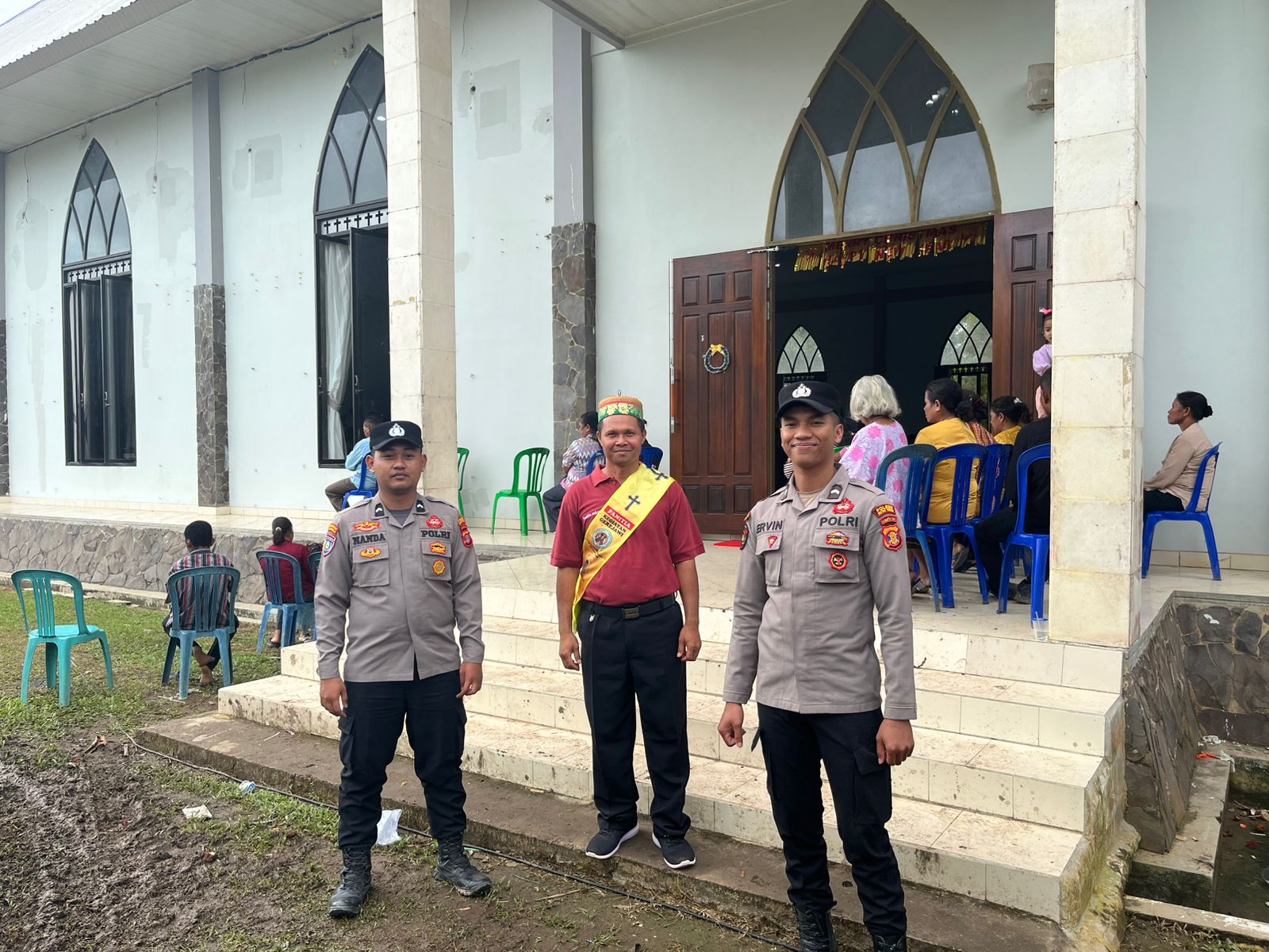 Polsek Muara Wahau Lakukan Pengamanan Ibadah Minggu di Gereja Santa Maria Ratu Damai