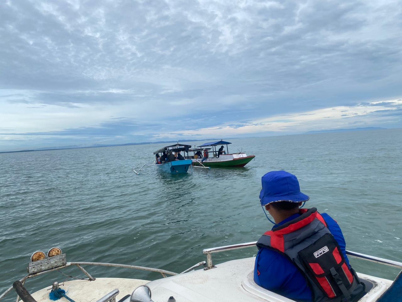 Peristiwa tersebut terjadi akibat cuaca buruk disertai angin kencang dan gelombang tinggi yang menyebabkan kapal pemancing mengalami kerusakan pada bagian sayap kapal hingga akhirnya terbalik di tengah perairan.