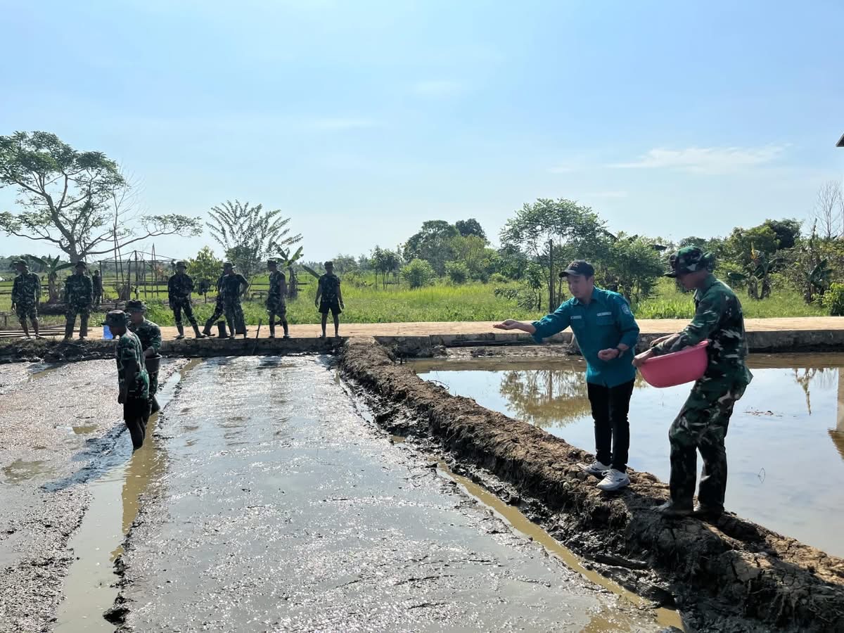Kegiatan ini berlangsung di area persawahan Desa Sekerat dan diikuti oleh perangkat desa, anggota Kelompok Tani Tirta Jaya, serta personel TNI Brigif 879/RC.
