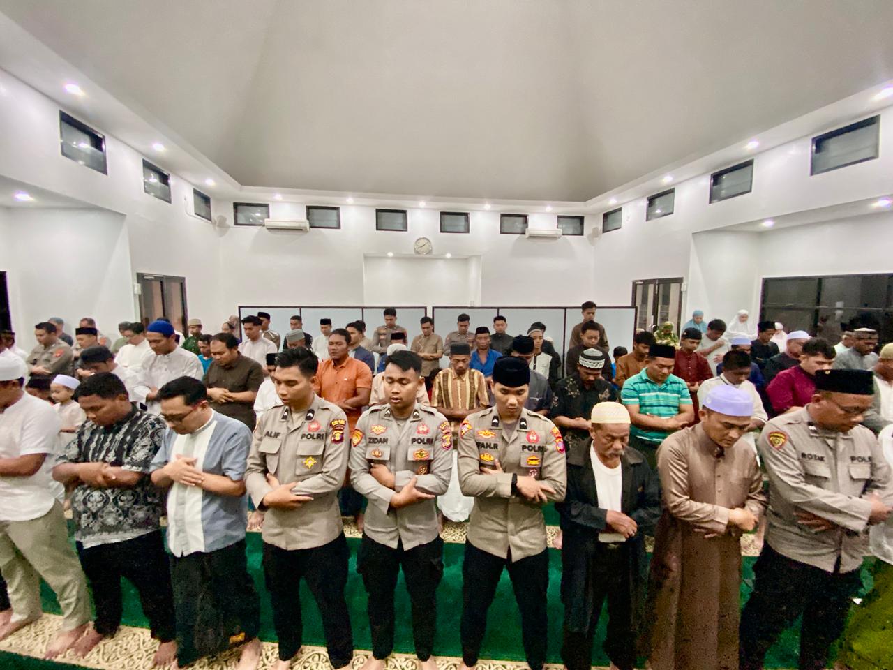 Sejak adzan waktu salat Isya berkumandang, warga mulai memadati masjid. Di antara saf yang tersusun rapi, tampak personel kepolisian berdiri sejajar dengan masyarakat. Tidak ada sekat jabatan maupun seragam, semuanya larut dalam ibadah yang sama, mengharap keberkahan di bulan penuh ampunan.