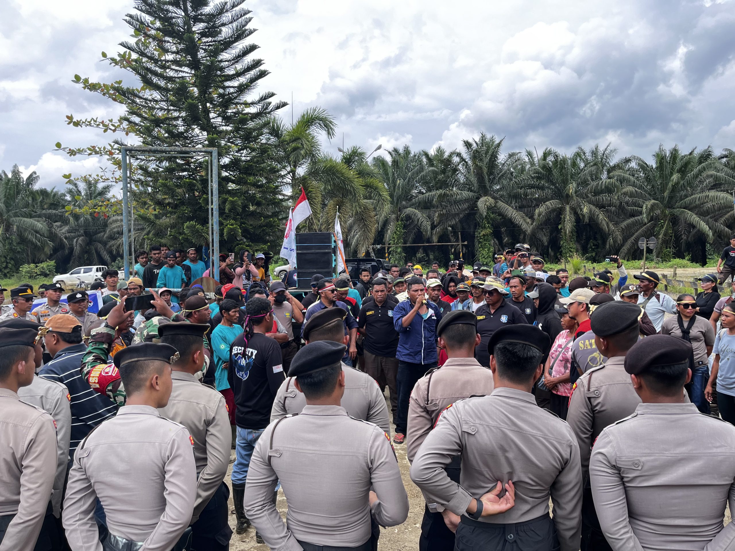Ratusan personel dari Polres Kutai Timur, dan Polsek Bengalon, diterjunkan untuk memberikan pelayanan jalannya aksi yang diikuti sekitar 65 orang massa.